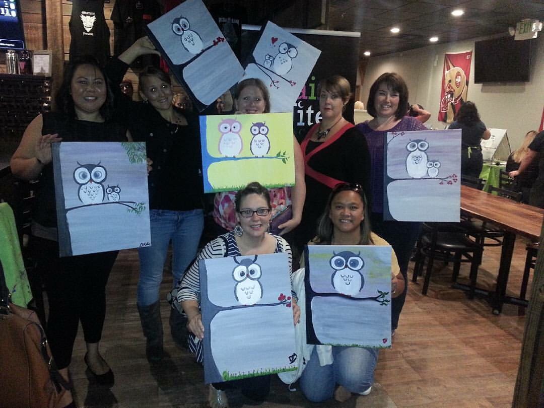 Fast forward four months later (I can’t believe it’s been only four months) and I’m back at it again. This time out was Paint Nite at a local establishment in Vancouver. A bunch of us girls signed up. Some weren’t able to make it because of a new mama in labor (prayers to mama and baby) but it was a good night. We got to try our hands at painting an owl.